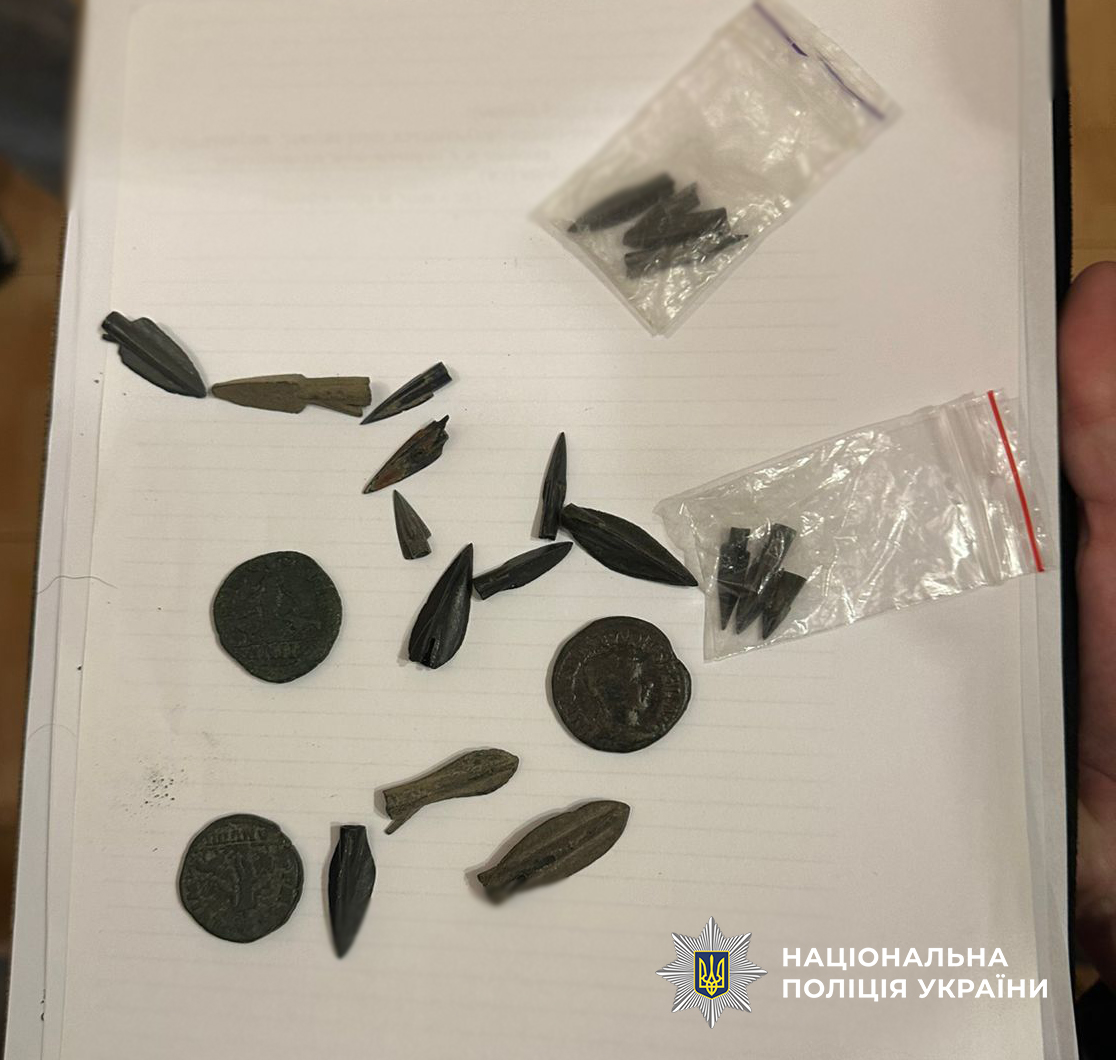 Правоохоронці розпочали розслідування за ч.1 ст.193 Кримінального кодексу України (незаконне привласнення знайденого або чужого майна). Під час обшуку в оселі фігуранта вилучили саму накладку, три старовинні монети («Гордіан ІІІ») і 19 наконечників стріл.