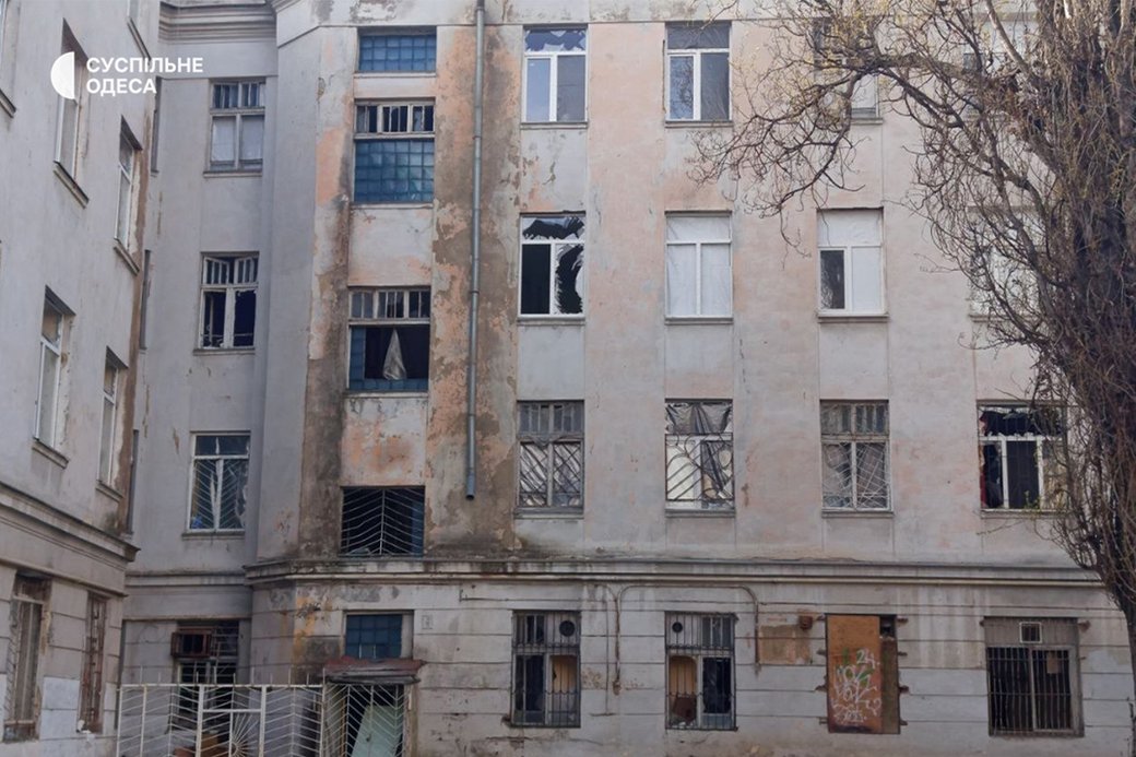 Вибиті вікна у будівлі внаслідок нічної атаки РФ 16 квітня 2026 року. Суспільне Одеса