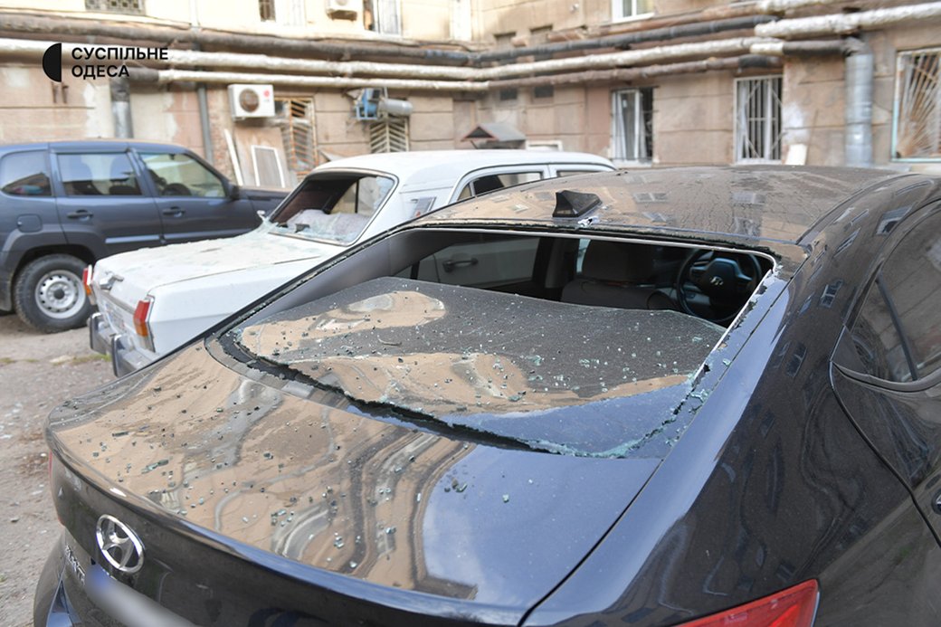 Пошкоджена внаслідок атаки РФ автівка в Одесі, 16 квітня 2026 року. Суспільне Одеса/Борис Бухман
