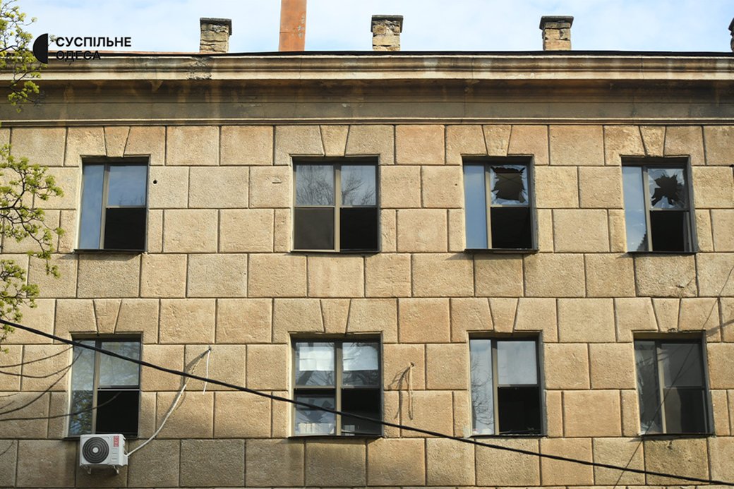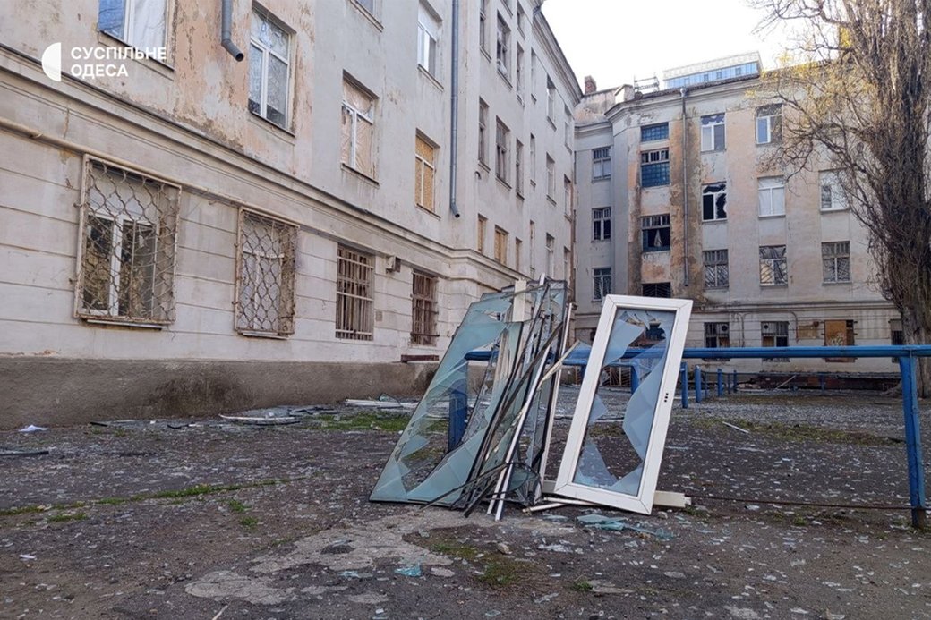 Вибиті вікна на території гуртожитку в Одесі, 16 квітня 2026 року. Суспільне Одеса