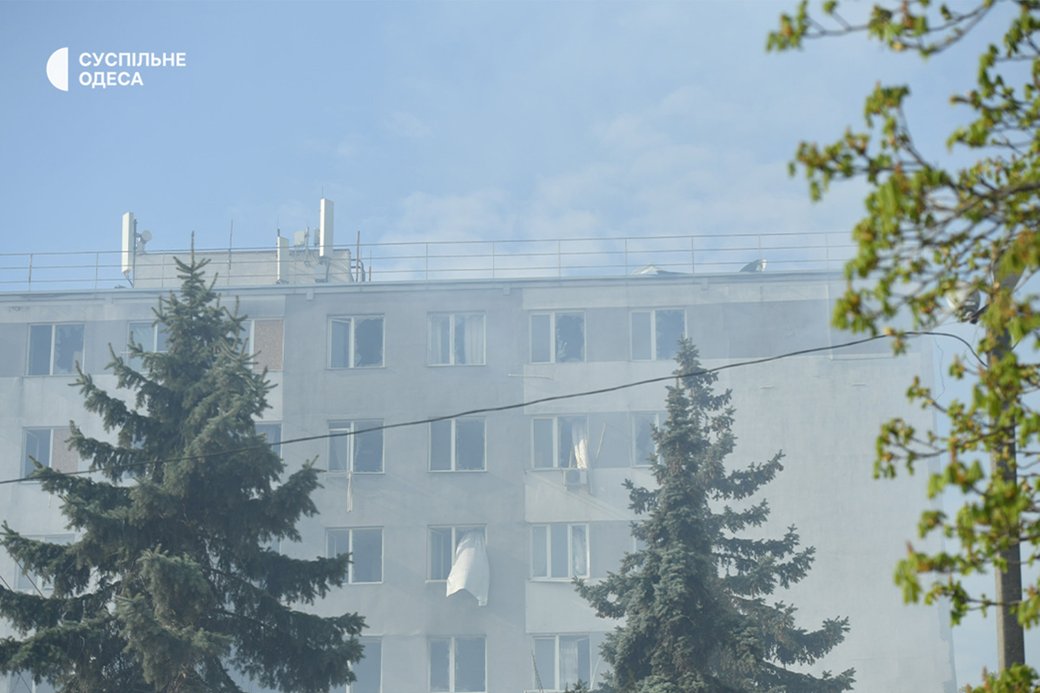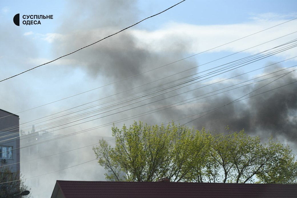 Дим на місці влучання в Одесі, 16 квітня 2026 року. Суспільне Одеса/Борис Бухман