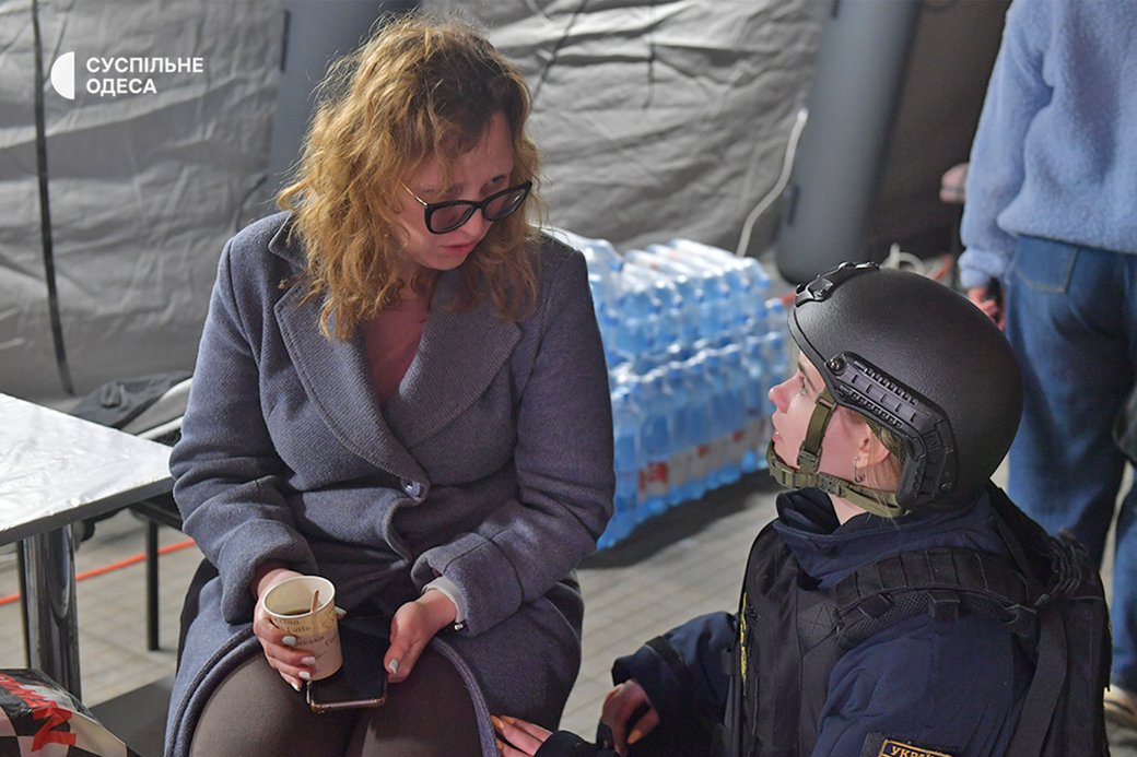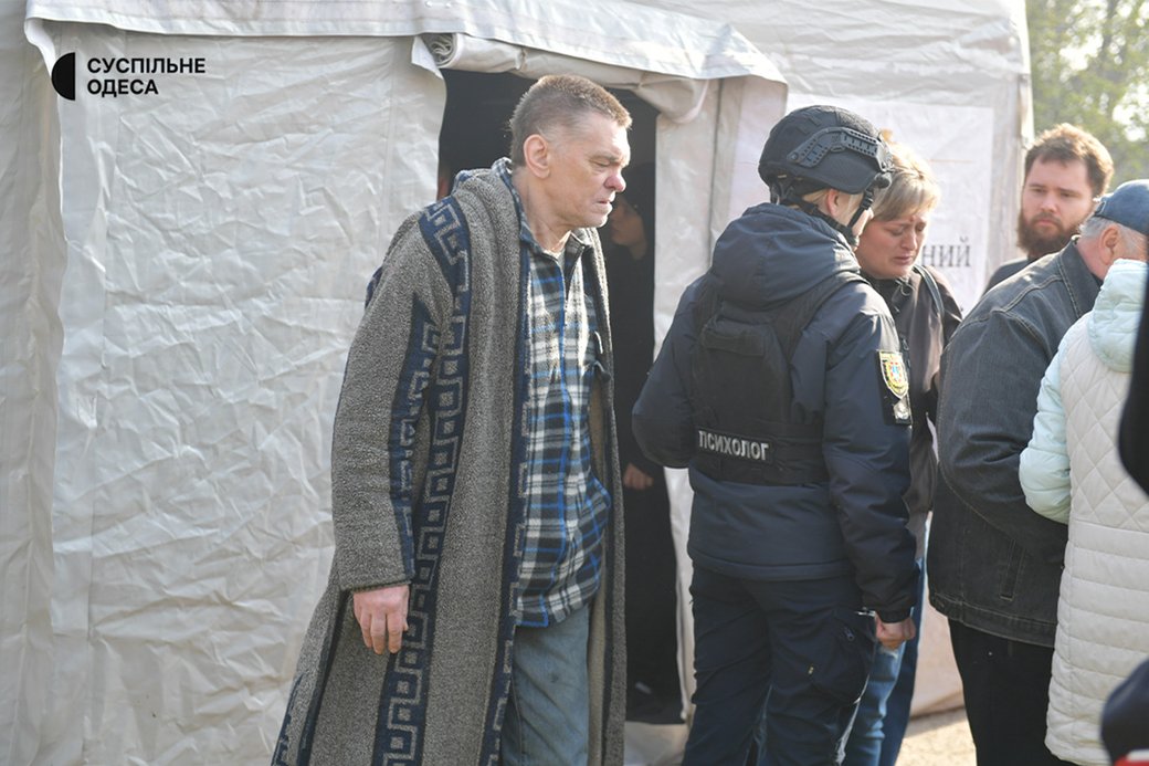 Жителі багатоповерхівки на місці атаки, 16 квітня 2026 року. Суспільне Одеса/Борис Бухман