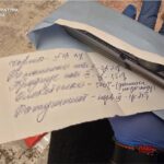 - чорнові записи з іменами людей та сумами ймовірно отриманих від них грошей.