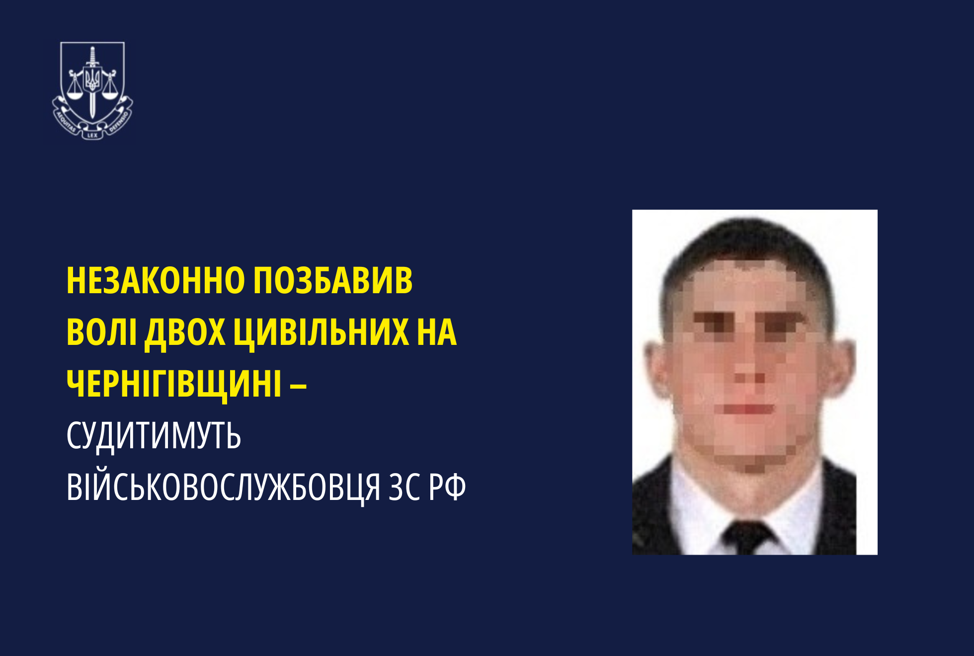 Прокурорами Чернігівської обласної прокуратури у порядку спеціального досудового розслідування направлено до суду обвинувальний акт стосовно військовослужбовця зс рф за фактом незаконного позбавлення волі цивільних осіб.