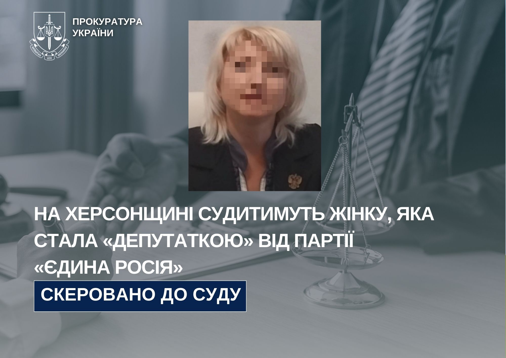 Прокурорами Херсонської обласної та Генічеської окружної прокуратур до суду скеровано обвинувальний акт стосовно жительки регіону за фактом колабораційної діяльності.