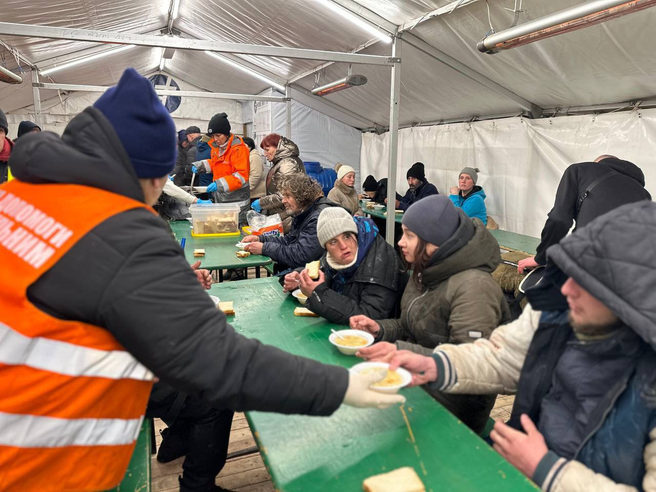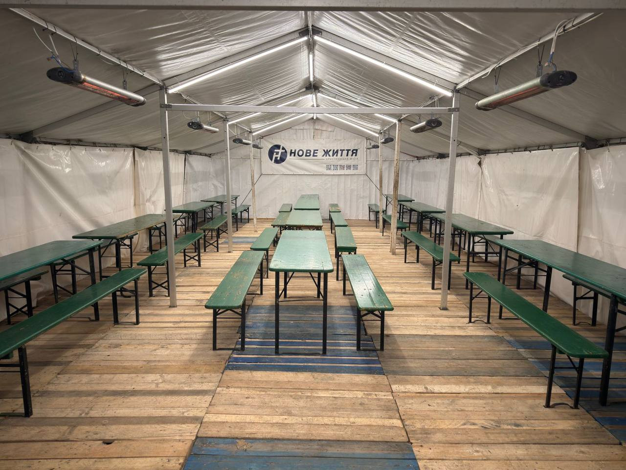 Другий намет розрахований на 180 осіб, передусім людей, які опинилися без даху над головою. Тут відвідувачам надають сніданки та вечері, можливість відпочити в теплі, а також первинну медичну допомогу.