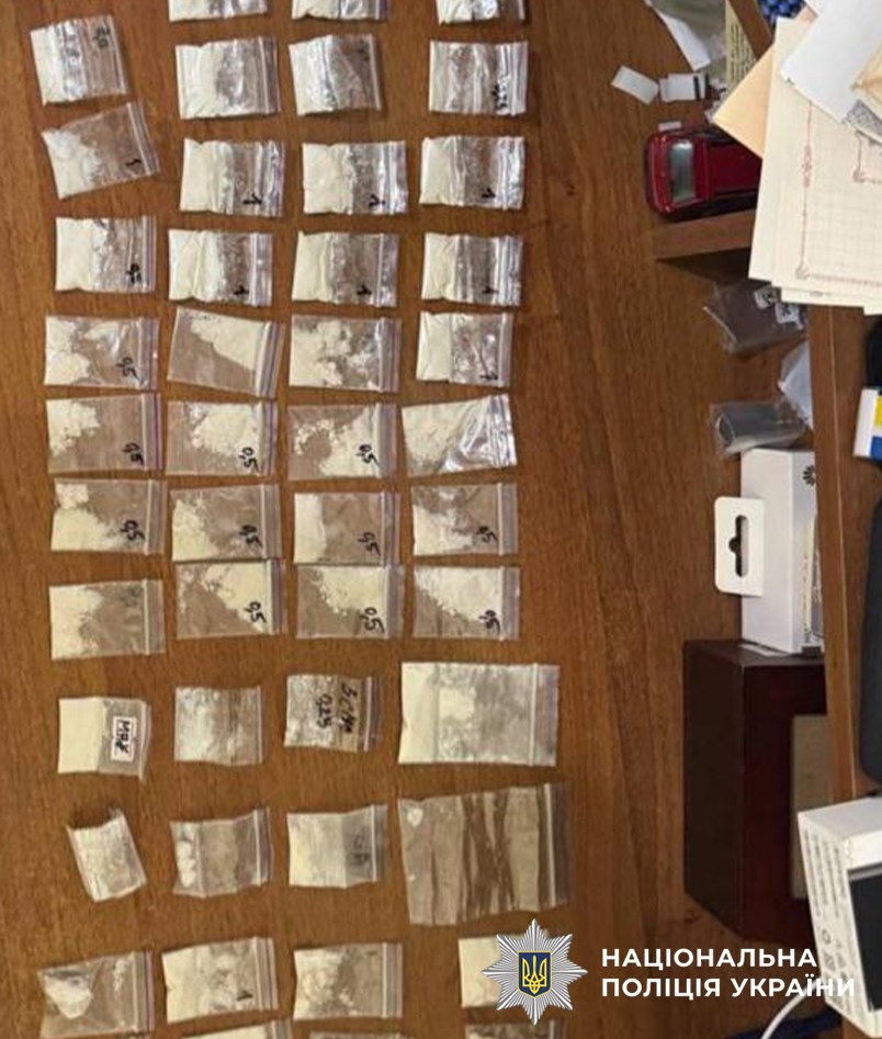 Окрім того, правоохоронці вилучили готовий до відправлення пакунок з наркотиками та психотропами, а також виявили 8 «закладок» з амфетаміном та мефедроном, які фігурант встиг зробити раніше. Усе скеровано на дослідження у Львівський науково-дослідний експертно-криміналістичний центр МВС України.