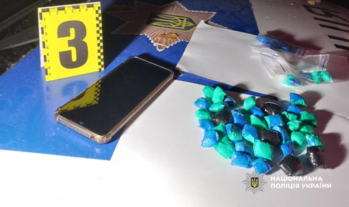 24-річну містянку поліцейські зупинили під час відпрацювання території обслуговування, коли та розкладала у сквері «закладки» з «товаром». Слідчі вилучили з наплічника жінки 52 згортки з кристалічною речовиною білого кольору та за допомогою експрес-тесту підтвердили, що один із них має наркотичний вміст. Зі слів останньої, це були «солі», які вона планувала збути. Ще чотири пакуночки з аналогічним вмістом, які правопорушниця вже встигла розкласти, правоохоронці вилучили зі схованок.