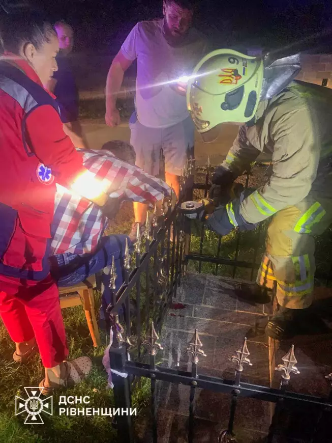 О 22:08 до Служби порятунку «101» надійшло повідомлення від працівників поліції про те, що у селі Зірне Березнівської територіальної громади Рівненського району чоловік травмував руку, впавши на гостру металеву огорожу та проколовши її арматурою, і не зміг самостійно вивільнитися.