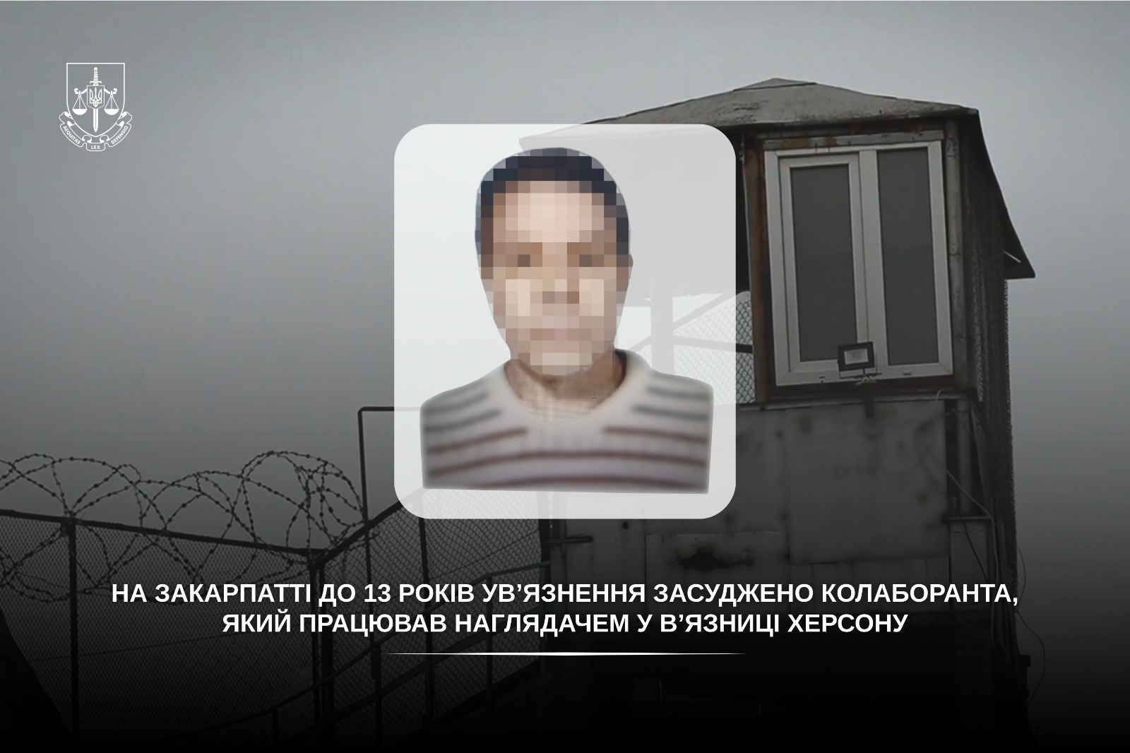 Закарпатська обласна прокуратура довела вину херсонця, який після захоплення російськими військами частини Херсонщини, добровільно погодився працювати окупованій місцевій в’язниці створеній на базі Північної виправної колонії (№90).