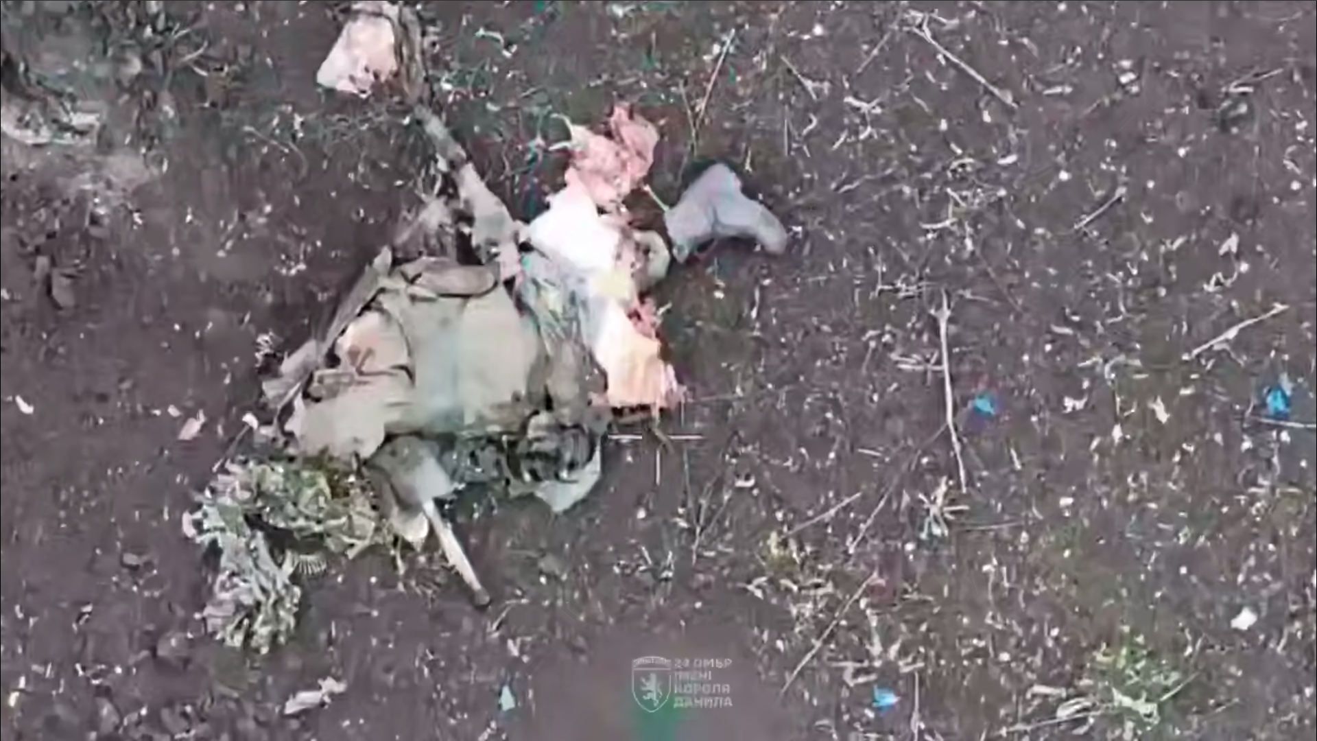 Один зі штурмовиків ворога, який розкладається у Часовому Яру. Скрін з відео 24-ї бригади
