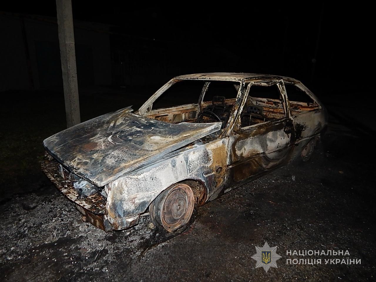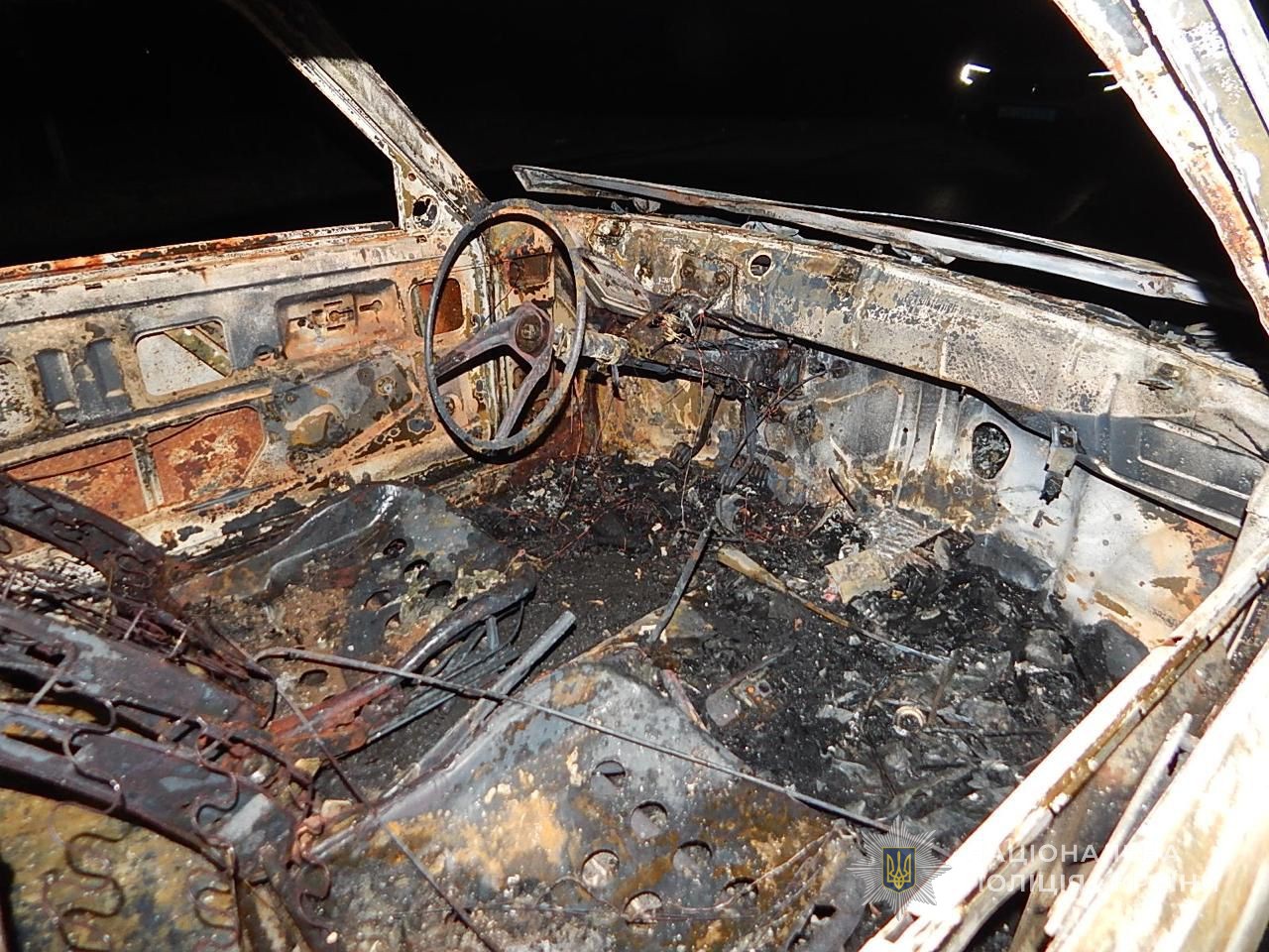 Менш ніж за годину правоохоронці розшукали автомобіль — він був повністю згорілий на одній із вулиць села. Згодом встановили й підозрюваного, якого виявили за місцем проживання.