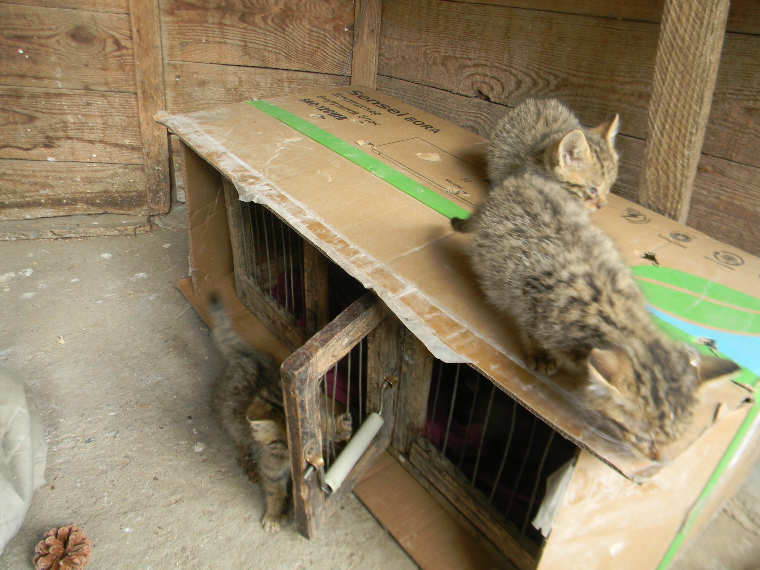 «Кошенята не зовсім чистокровні нащадки лісового кота, бо ці тварини легко схрещуються зі свійськими котами. Але між тим вони дуже агресивні: сичать, б’ються, дряпають одне одного і їх не можна брати до рук, поки не нагодуєш», — додає директорка.