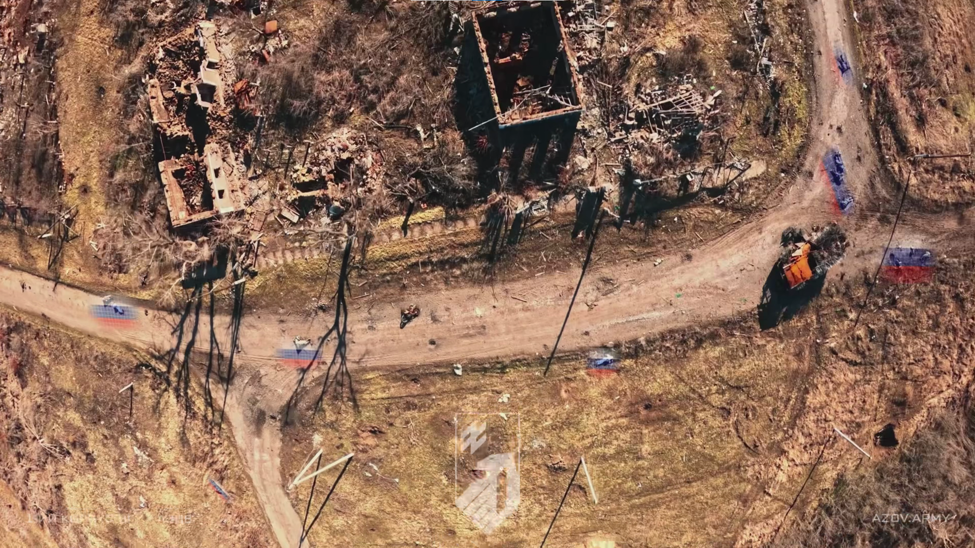 Трупи окупантів виділені триколором. Скрін з відео 1-го корпусу