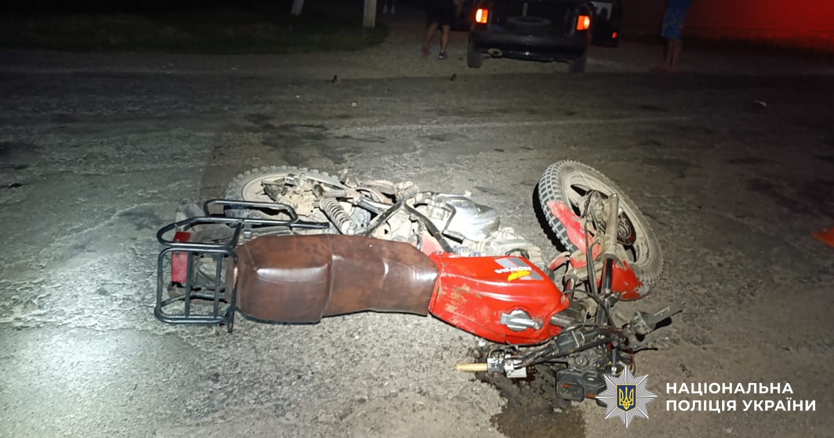 Аварія трапилася днями у с. Чорногузи. Внаслідок події травмувалися водій та пасажир мотоцикла. Наразі за фактом дорожньо-транспортної пригоди слідчі поліції розпочали кримінальне провадження.
