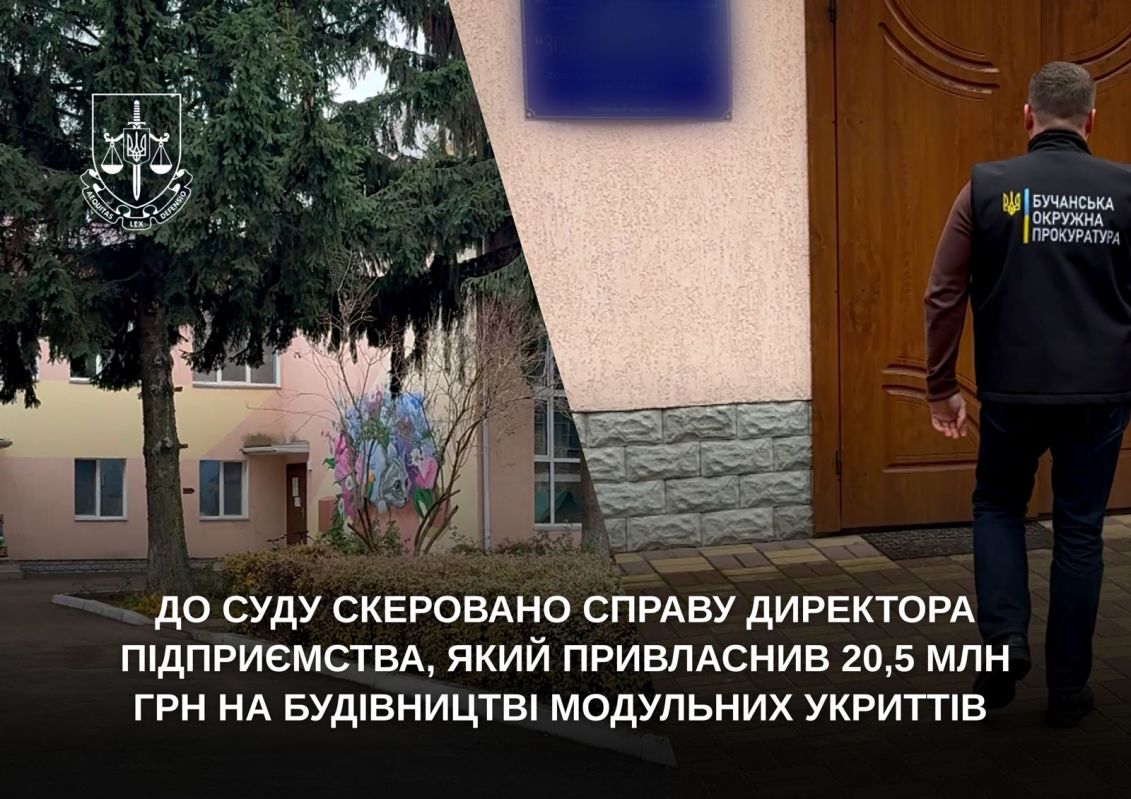 За даними слідства, директор компанії-підрядника, зловживаючи своїм службовим становищем, в червні 2024 року привласнив 20,5 млн грн бюджетних коштів, які виділили для побудови модульних укриттів на території освітнього закладу однієї з громад Бучанського району.