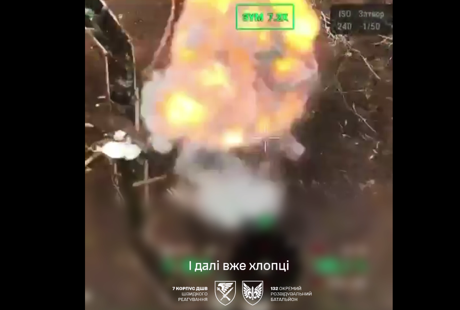 Міна вибухнула біля схованки окупанта. Скрін з відео 7-го корпусу