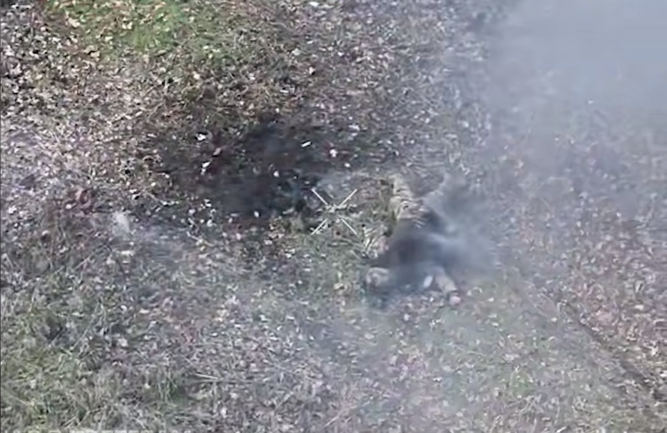 Після влучання дрона з окупанта повалив дим. Скрін з відео 225-го полку