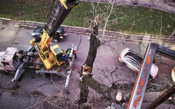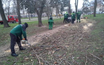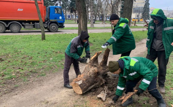 Працівники комунального підприємства «Міськзелентрест» оперативно розпочали роботи з ліквідації наслідків негоди. Озеленювачі здійснюють розпил повалених дерев, їх вивезення, а також прибирання вулиць від гілок і сміття.
