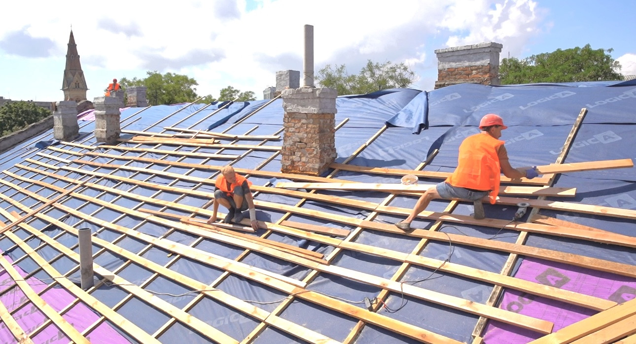 Наразі тривають протиаварійні роботи: демонтують аварійний флігель, зокрема несучі конструкції, перекриття та стіни, що потребують заміни. Також проводиться ремонт покрівлі, яка постраждала від вибухової хвилі, — завершено роботи на лівому флігелі, триває перекриття даху фасадного крила.