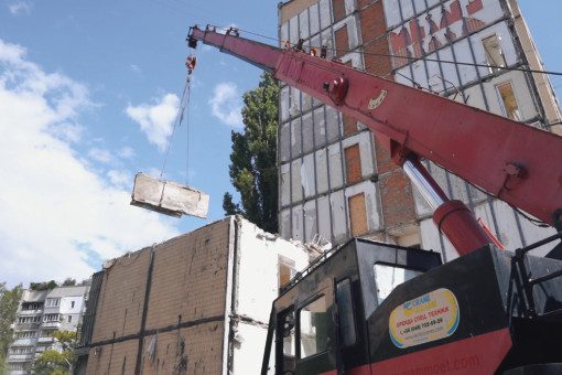 У місті розпочато капітальний ремонт дев’ятиповерхового житлового будинку за адресою: проспект Князя Володимира Великого, 134 (Добровольського), який зазнав серйозних ушкоджень унаслідок атаки дрона-камікадзе у березні 2024 року.