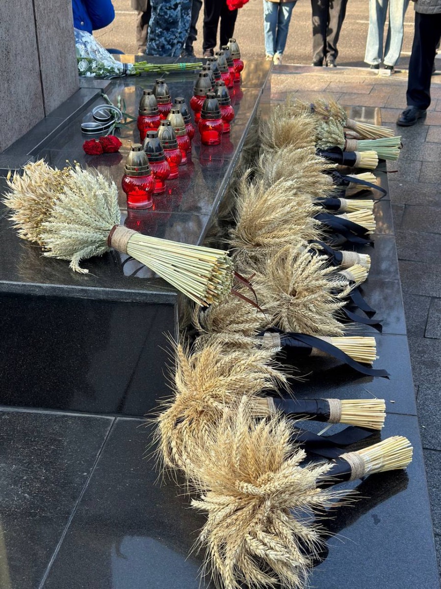 З цієї нагоди на бульварі Гетьмана Сагайдачного в Одесі відбулася церемонія покладання квітів та композицій із житніх і пшеничних колосків до пам’ятного знака жертвам Голодомору.