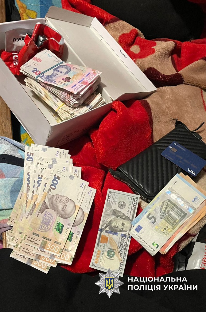 У ході обшуків поліція вилучила телефони, банківські картки, золото та близько 200 тис. грн у різній валюті. Обох затримано за ст. 208 КПК України. Слідчі повідомили їм про підозру за ч. 1, ч. 2 ст. 255 та ч. 4 ст. 190 КК України. Їм загрожує до 12 років позбавлення волі з конфіскацією майна.