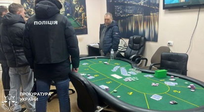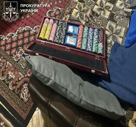 Під час обшуків за адресою розташування незаконного грального закладу виявлено та вилучено стіл для гри в покер, гральні фішки, гральні карти, грошові кошти, мобільні телефони та чорнові записи.