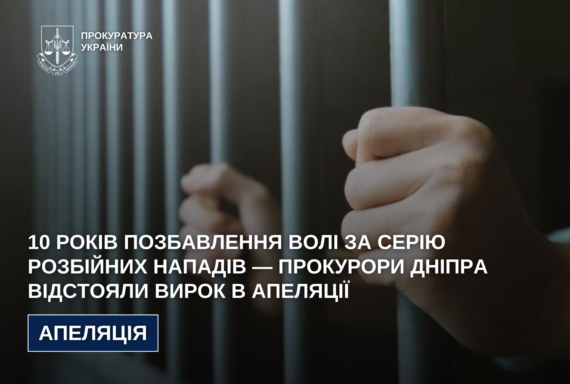 За участі прокурорів Дніпропетровської обласної прокуратури апеляційний суд залишив без змін вирок трьом громадянам іноземної держави, засудженим за розбійні напади із проникненням у житло, поєднаних із застосуванням насильства, а також за незаконне заволодіння транспортним засобом.