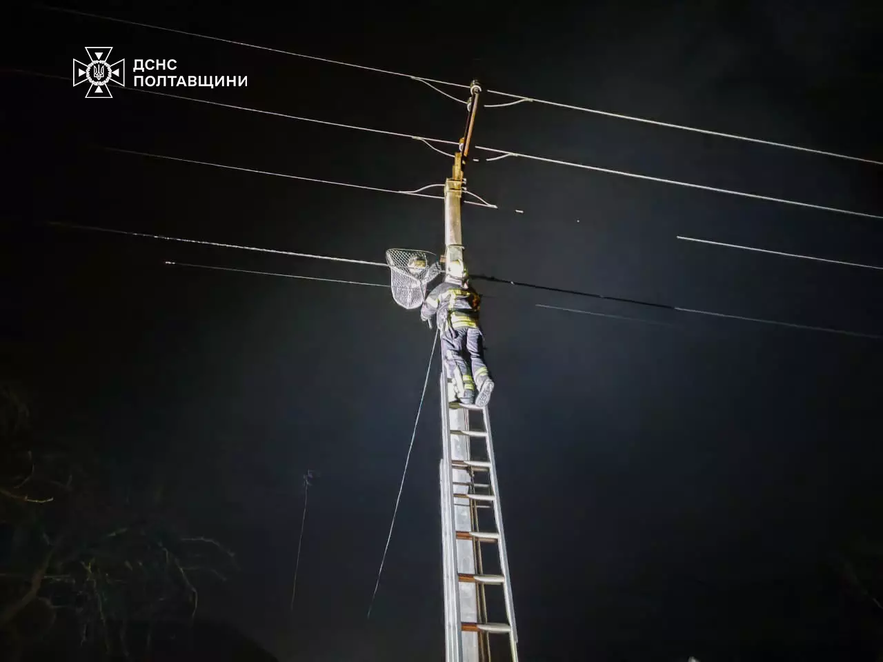 Зволікати було небезпечно, адже існувала загроза для життя птаха та її потомства. Рятувальники вирішили діяти вночі, скориставшись тим, що пави не бачать у темряві. Надзвичайники діяли з дотриманням усіх правил безпеки: електрики відключили на цій ділянці лінію електропередач, щоб унеможливити ураження струмом під час проведення рятувальної операції. Для уникнення переляку та не допущення втечі на закриту територію приватного сектору, рятувальники застосували спеціальну сітку для відлову птахів.