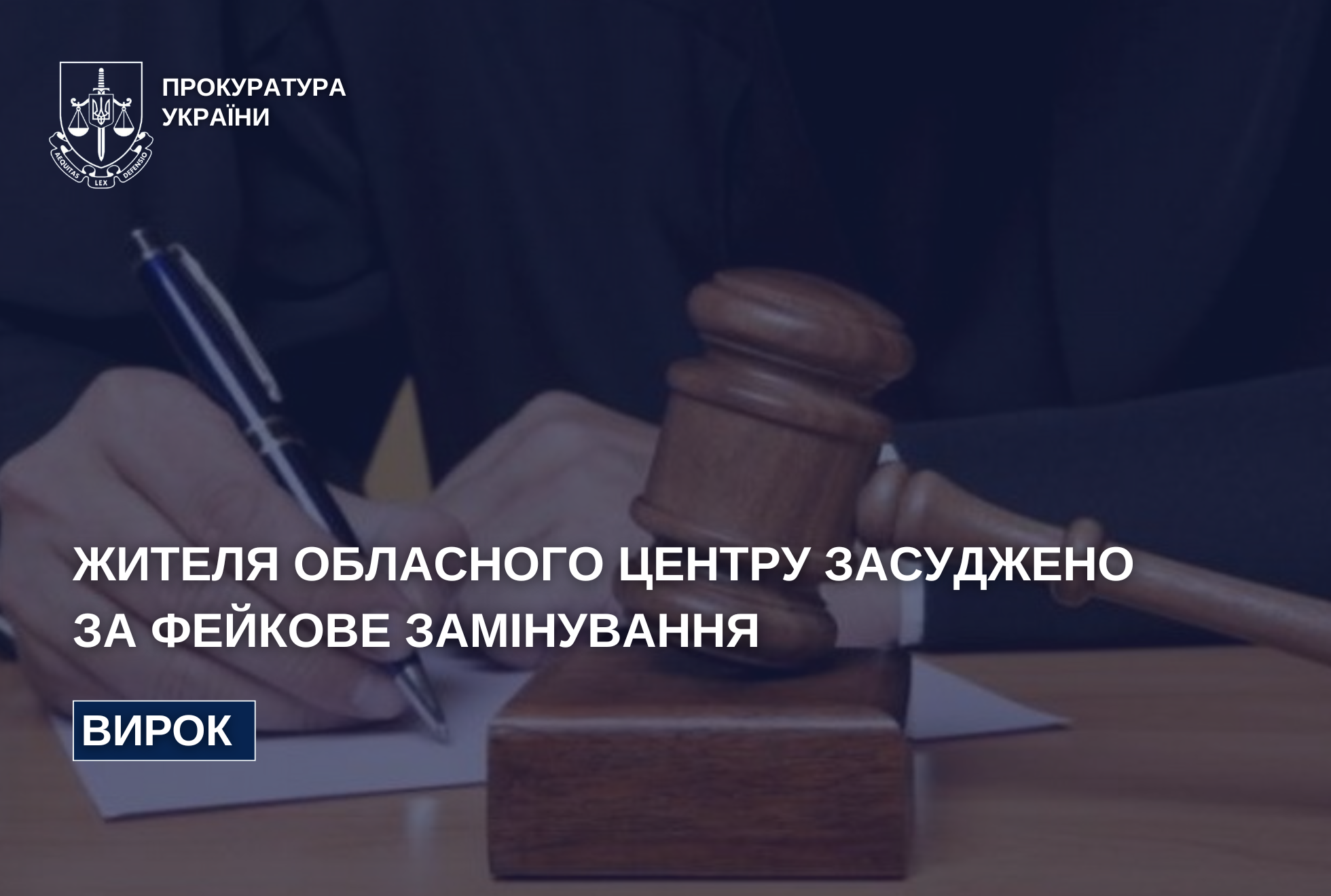 За публічного обвинувачення Окружної прокуратури міста Хмельницького 52-річного місцевого жителя визнано винним у вчиненні завідомо неправдивого повідомлення про підготовку вибуху у будівлі, що забезпечує діяльність органів державної влади.