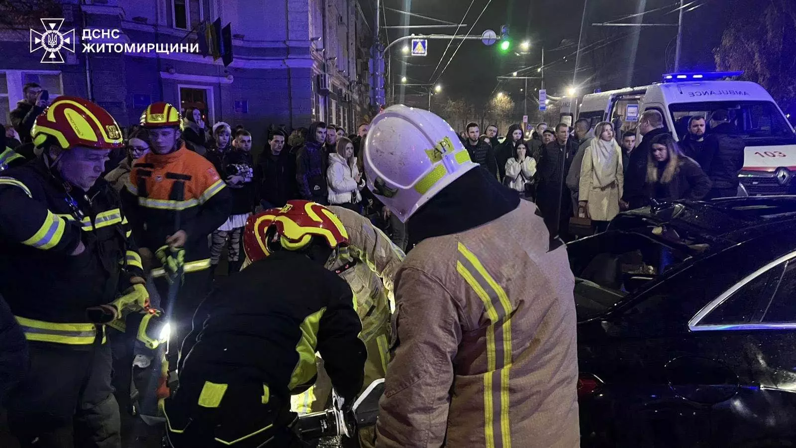 Подія сталася у Житомирі. Внаслідок дорожньо-транспортної пригоди легковик перекинувся та двох пасажирів було заблоковано на задньому сидінні.