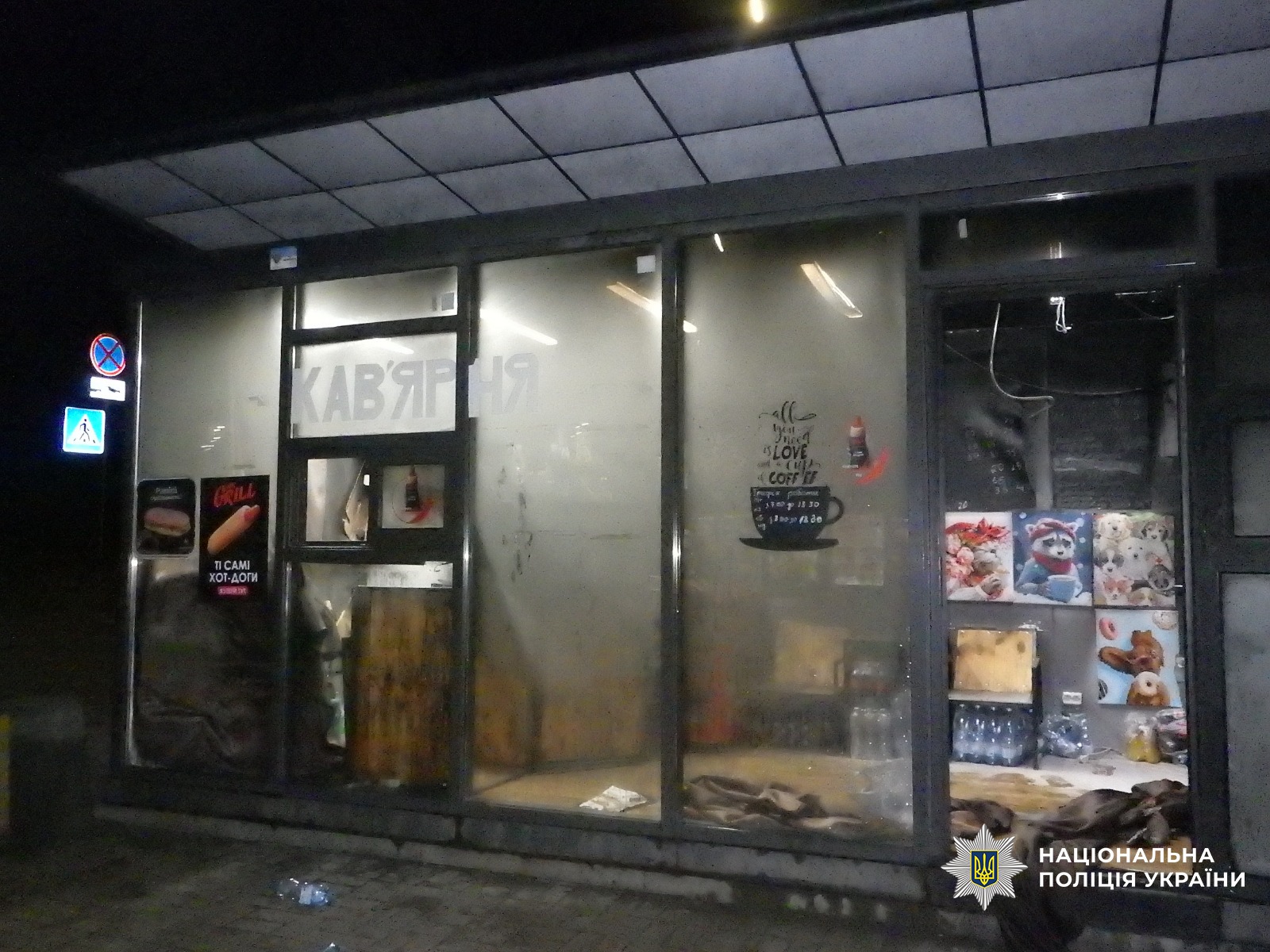 Тоді, під час першочергових слідчих дій поліцейські з’ясували, що вночі невідомий підійшов до приміщення кав’ярні, каменем розбив вітрину та закинув пляшку з горючою сумішшю. Внаслідок підпалу було пошкоджено внутрішнє оздоблення та майно.