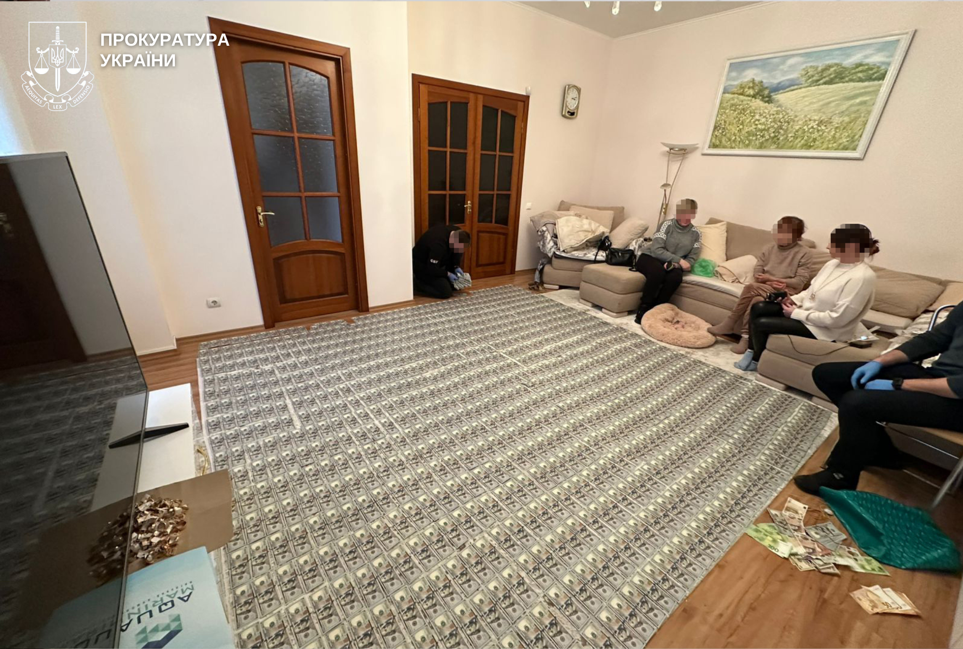 У місцях їхньої роботи та проживання проведенні санкціоновані обшуки. Під час них виявлено та вилучено: понад 956 тис. грн, 221 тис. доларів США, 5740 євро готівкою, а також 87 одиниць ювелірних виробів. Крім того – чорнові записи з прізвищами людей та сумами ймовірно отриманих від них грошей.
